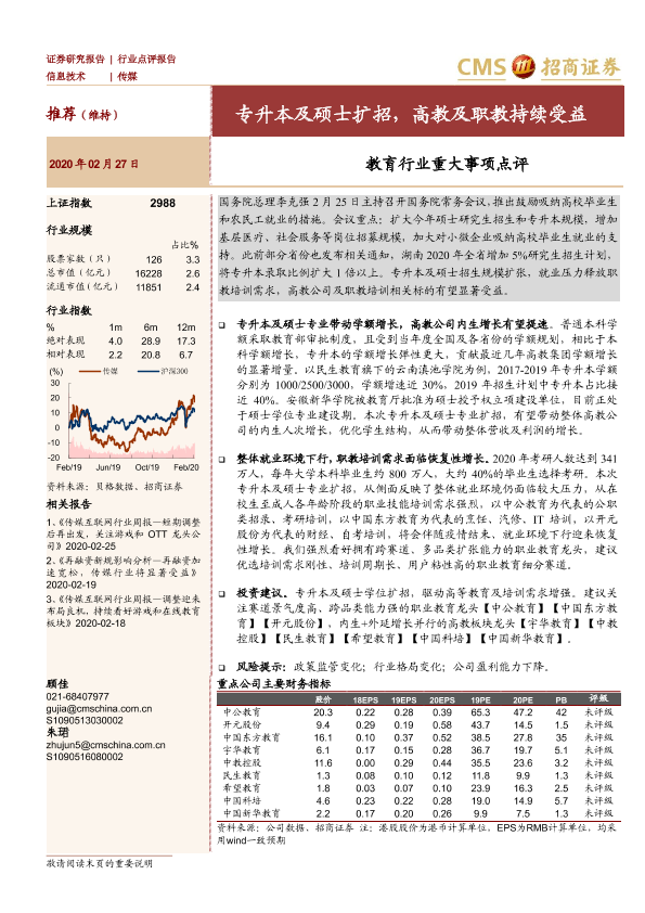 【海通证券】【20200227】教育行业重大事项点评:专升本及硕士扩招,高教及职教持续受益-2页