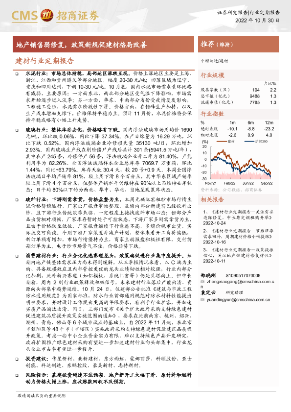 【海通证券】【20221030】建材行业定期报告:地产销售弱修复,政策新规促建材格局改善-35页