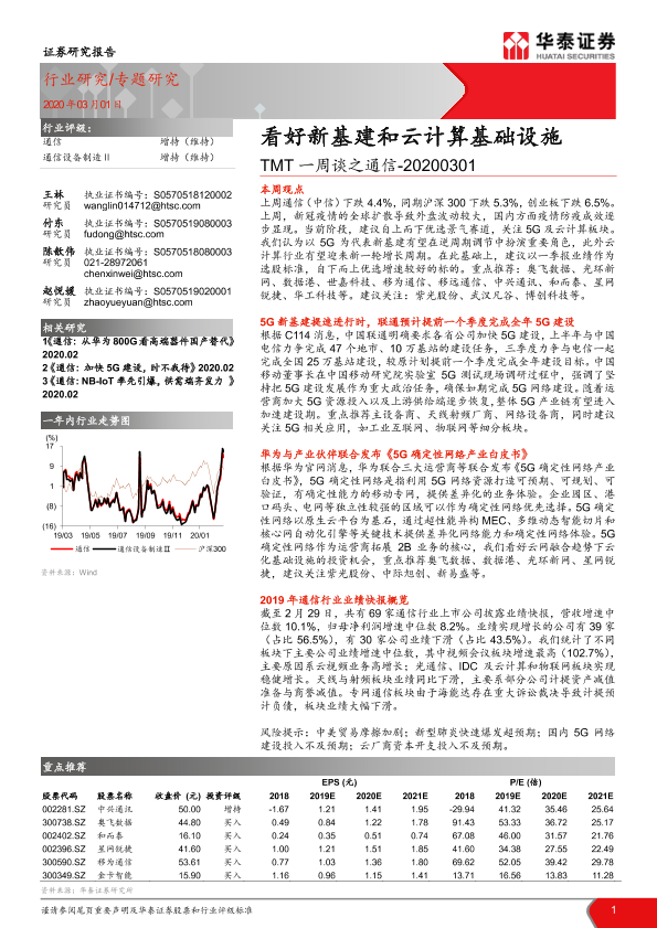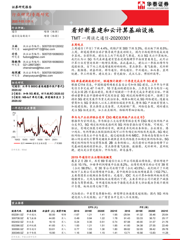 【华泰证券】【20200301】TMT一周谈之通信:看好新基建和云计算基础设施-14页