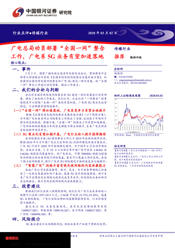 【银河证券】【20200302】传媒行业点评:广电总局动员部署“全国一网”整合工作,广电系5G业务有望加速落地-3页