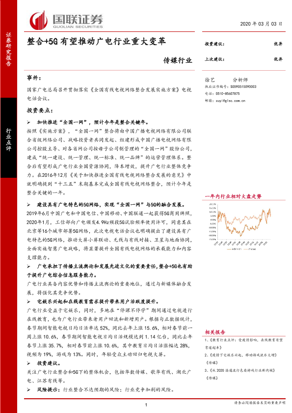 【国联证券】【20200303】整合+5G有望推动广电行业重大变革-4页