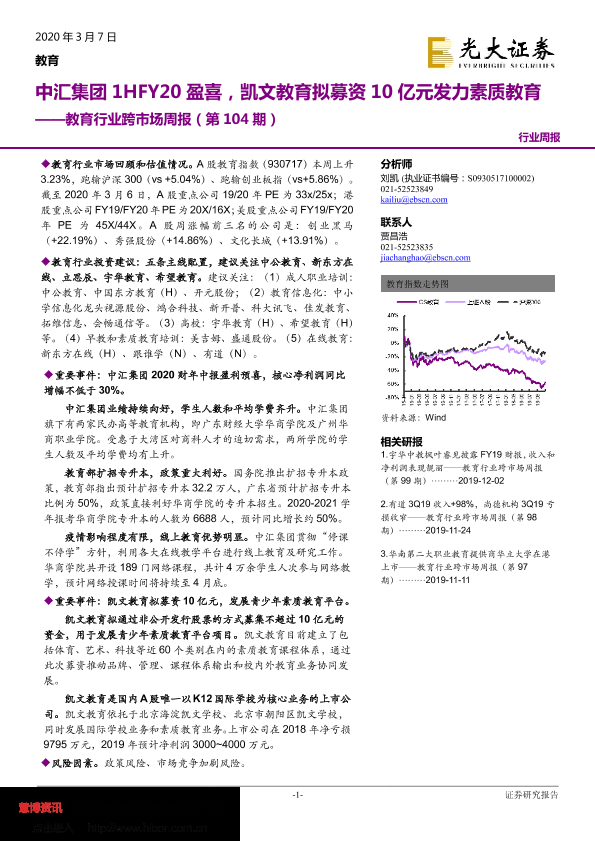 【光大证券】【20200307】20200307-光大证券-教育行业跨市场周报(第104期):中汇集团1HFY20盈喜,凯文教育拟募资10亿元发力素质教育-12页