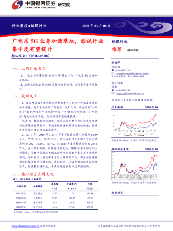 【银河证券】【20200308】20200308-中国银河-传媒行业周报:广电系5G业务加速落地,影视行业集中度有望提升-25页