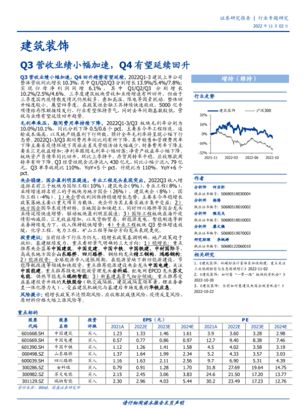 【国盛证券】【20221102】建筑装饰行业专题研究:Q3营收业绩小幅加速,Q4有望延续回升-55页