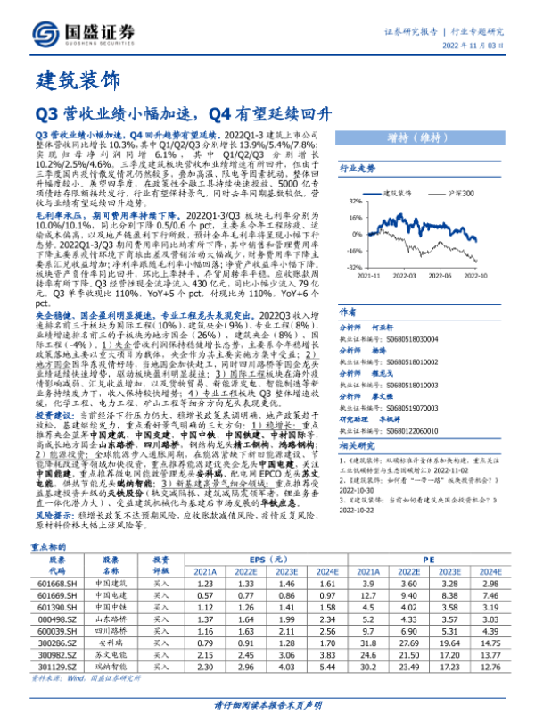 【国盛证券】【20221103】建筑装饰行业:Q3营收业绩小幅加速,Q4有望延续回升-55页
