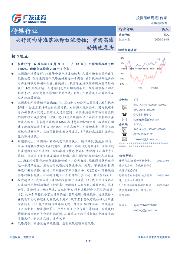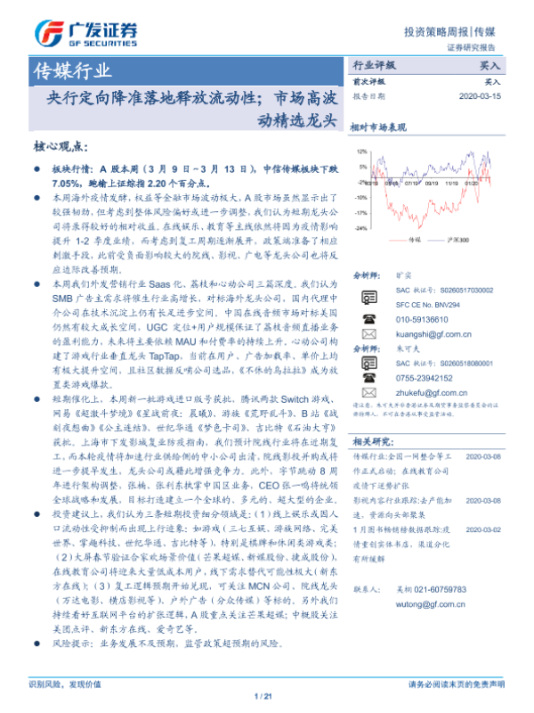 【广发证券】【20200315】20200315-广发证券-传媒行业投资策略周报:央行定向降准落地释放流动性;市场高波动精选龙头-21页