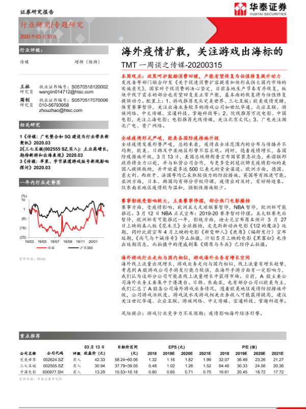 【华泰证券】【20200315】TMT一周谈之传媒:海外疫情扩散,关注游戏出海标的-8页