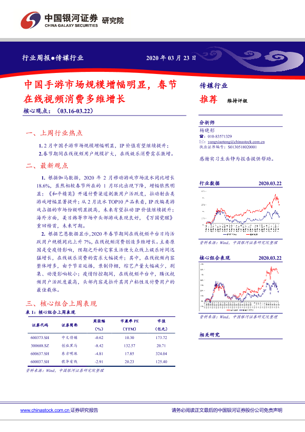 【银河证券】【20200323】中国银河-传媒行业周报:中国手游市场规模增幅明显,春节在线视频消费多维增长-24页