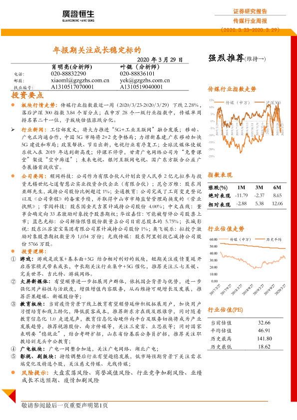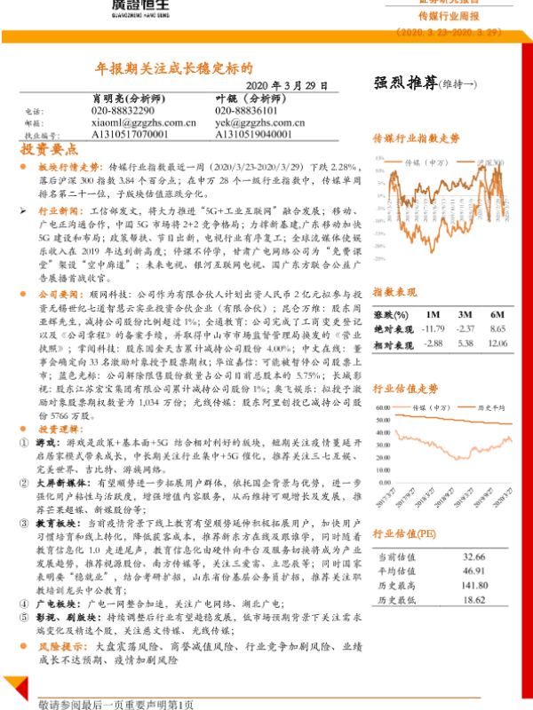 【广证恒生】【20200329】20200329-广证恒生证券研究所-传媒行业周报:年报期关注成长稳定标的-19页