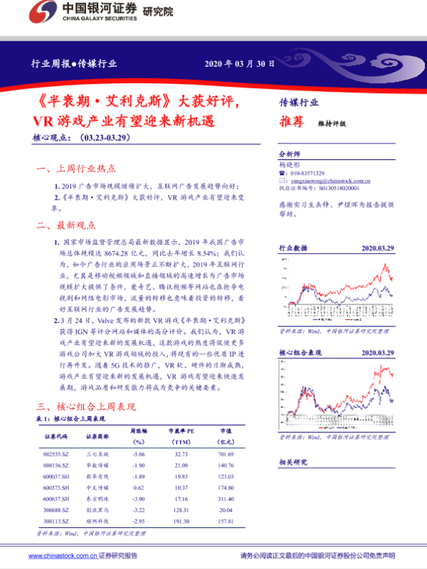 【银河证券】【20200330】20200330-中国银河-传媒行业周报:《半衰期·艾利克斯》大获好评,VR游戏产业有望迎来新机遇-23页