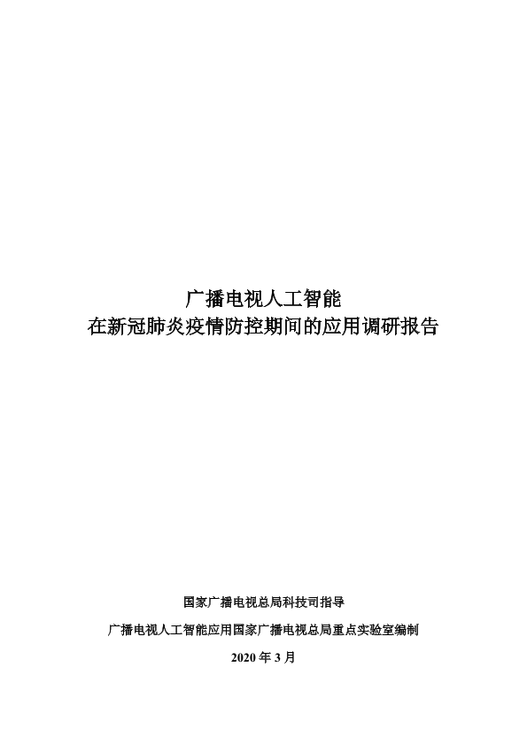 【国家广播电视总局科技司】【202003】广播电视人工智能在新冠肺炎疫情防控期间的应用调研报告-17页