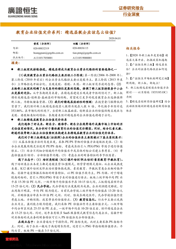 【广证恒生】【20200401】教育企业估值定价系列:精选层教企应该怎么估值?-28页