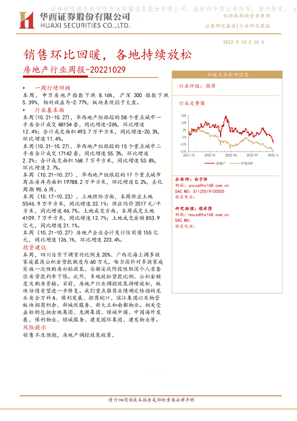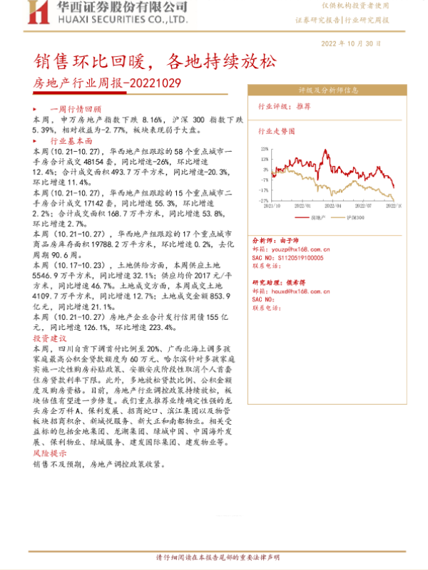【华西证券】【20221030】房地产行业周报:销售环比回暖,各地持续放松-23页
