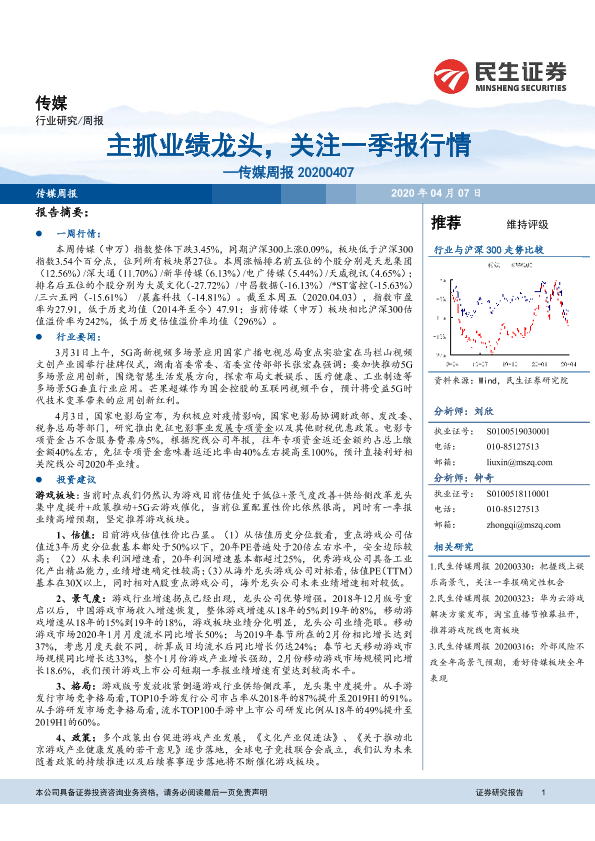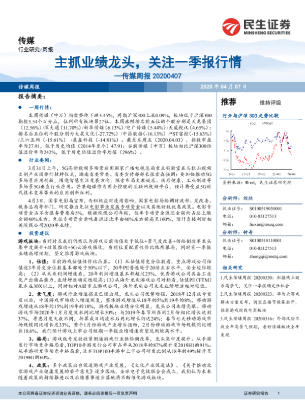 【民生证券】【20200407】主抓业绩龙头,关注一季报行情—传媒周报 20200407-16页