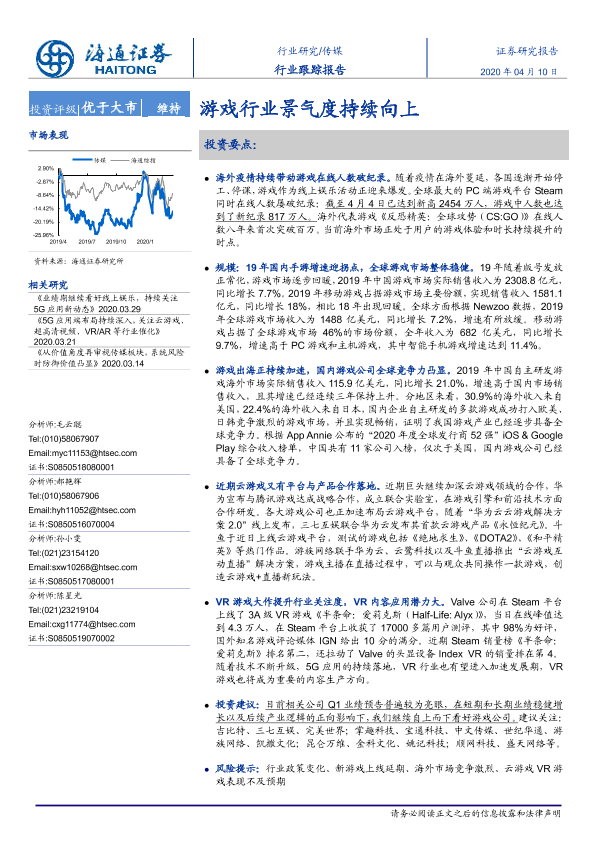 【海通证券】【20200410】20200410-海通证券-传媒行业跟踪报告 :游戏行业景气度持续向上-15页