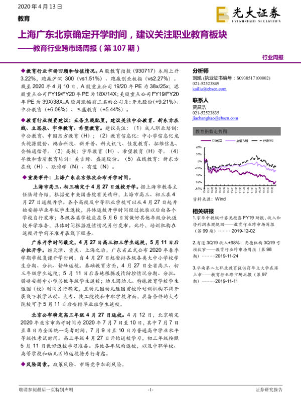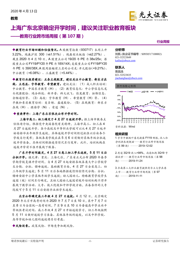 【光大证券】【20200413】20200413-光大证券-教育行业跨市场周报(第107期):上海广东北京确定开学时间,建议关注职业教育板块-11页