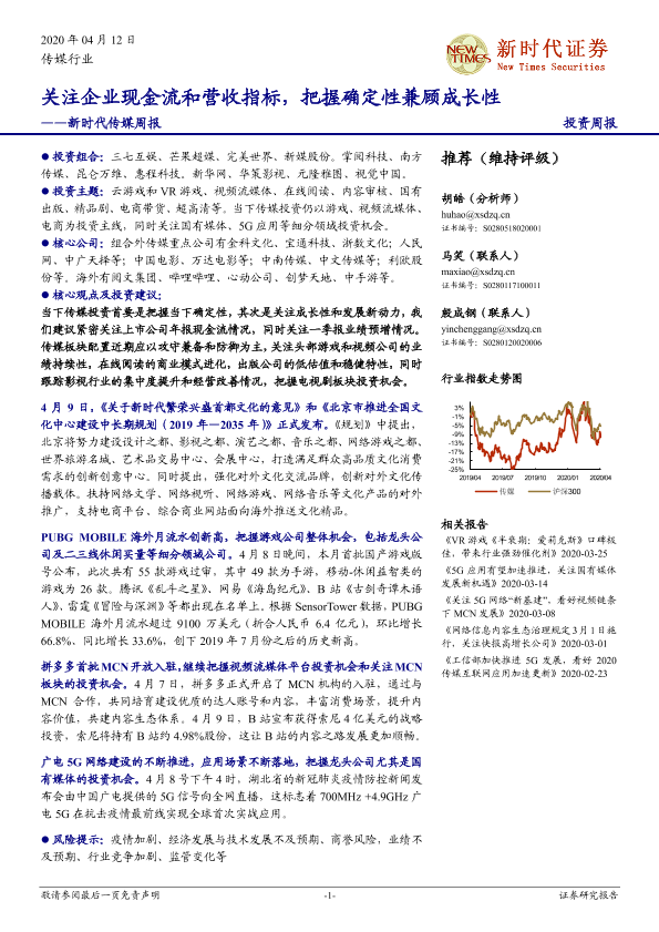 【新时代证券】【20200412】新时代传媒周报:关注企业现金流和营收指标,把握确定性兼顾成长性-38页