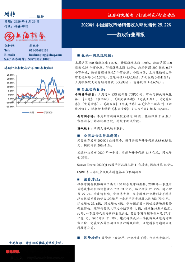 【上海证券】【20200420】2020Q1中国游戏市场销售收入环比增长25.22%-9页