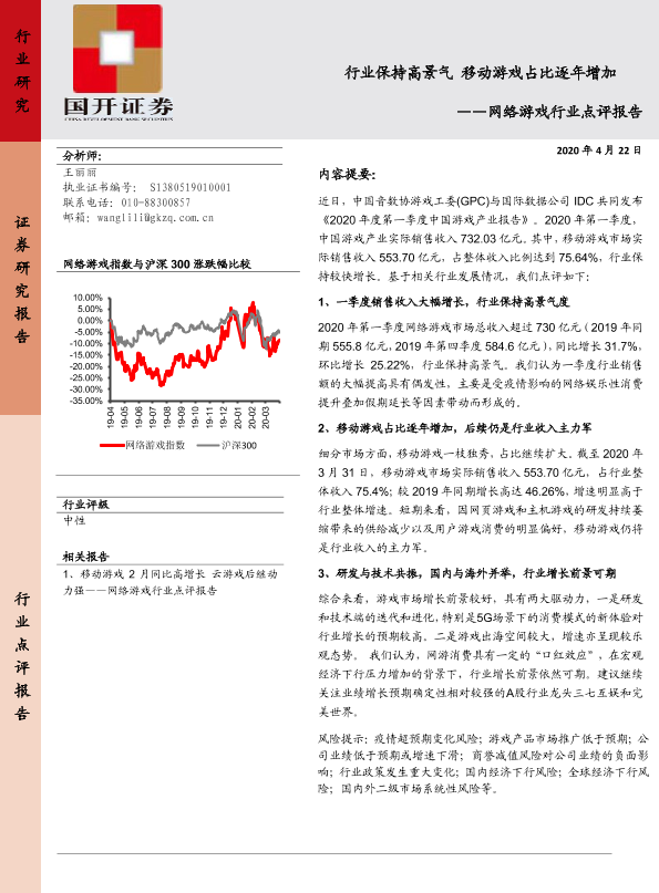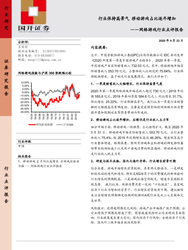 【国开证券】【20200422】20200422-国开证券-网络游戏行业点评报告:行业保持高景气 移动游戏占比逐年增加-6页