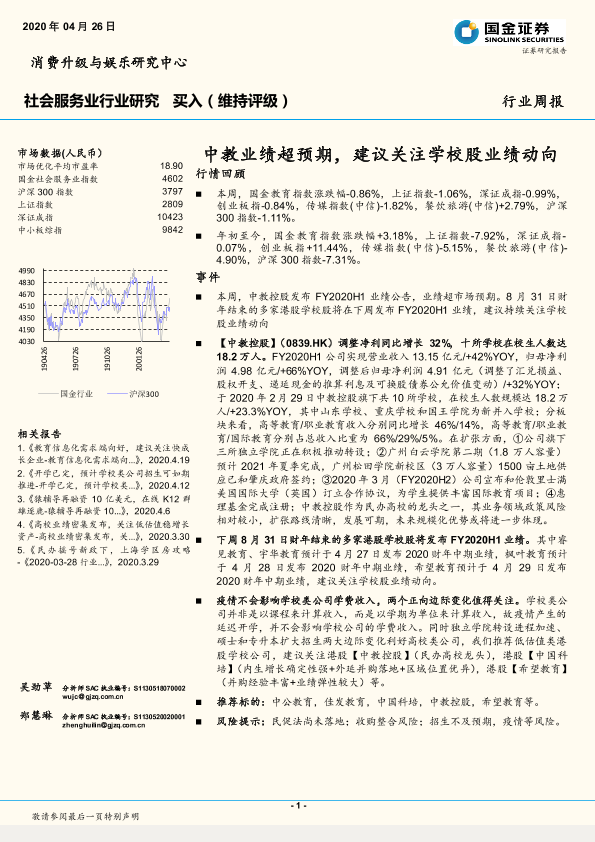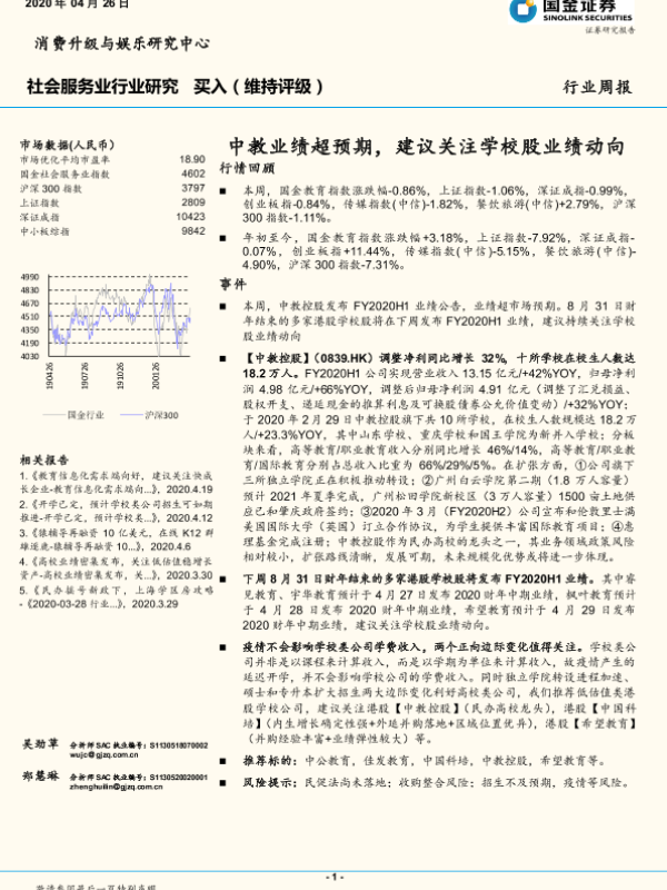 【国金证券】【20200426】社会服务业行业研究:中教业绩超预期,建议关注学校股业绩动向-9页