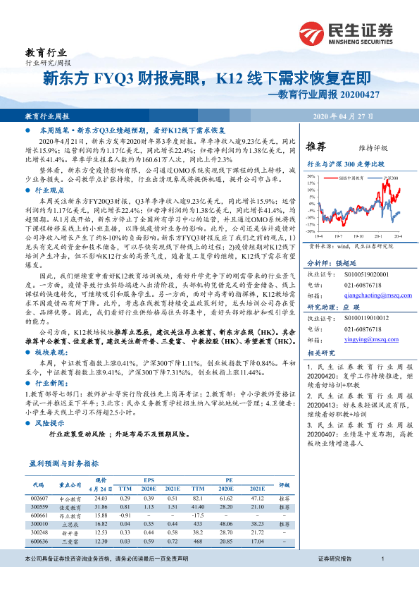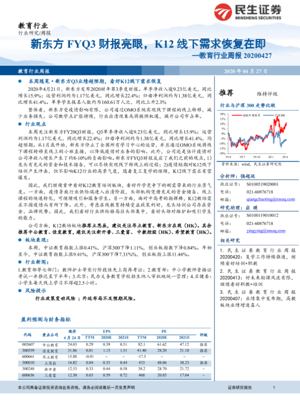 【民生证券】【20200427】20200427-民生证券-教育行业周报:新东方FYQ3财报亮眼,K12线下需求恢复在即-12页