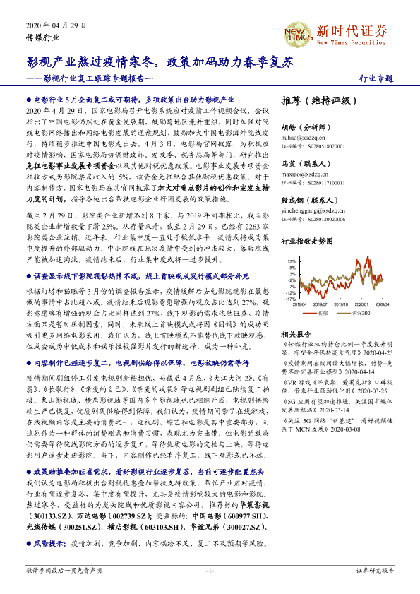 【新时代证券】【20200429】20200429-新时代证券-影视行业复工跟踪专题报告一:影视产业熬过疫情寒冬,政策加码助力春季复苏-13页