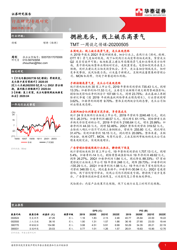 【华泰证券】【20200505】TMT一周谈之传媒:拥抱龙头,线上娱乐高景气-11页