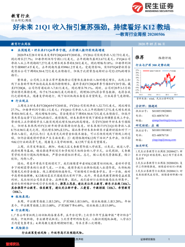 【民生证券】【20200506】20200506-民生证券-教育行业周报:好未来21Q1收入指引复苏强劲,持续看好K12教培-13页