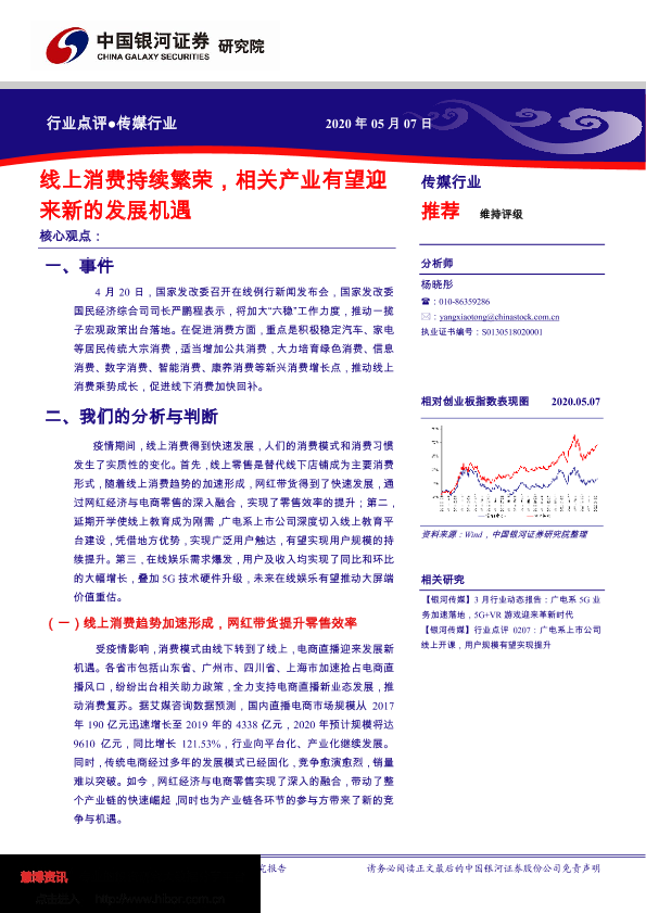 【银河证券】【20200507】传媒行业:线上消费持续繁荣,相关产业有望迎来新的发展机遇-7页
