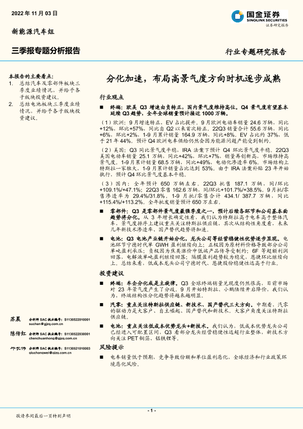【国金证券】【20221103】新能源汽车三季报专题分析报告:分化加速,布局高景气度方向时机逐步成熟-33页
