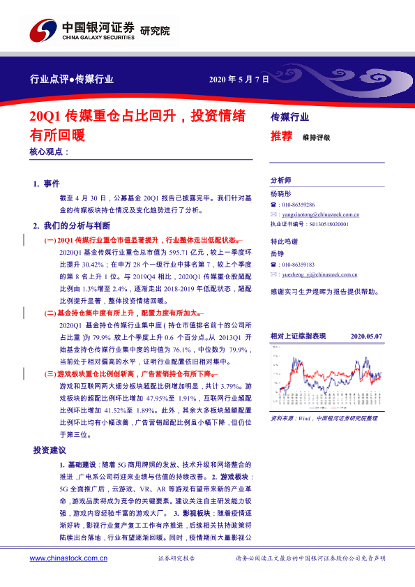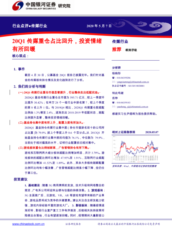 【银河证券】【20200507】20Q1传媒重仓占比回升,投资情绪有所回暖-19页