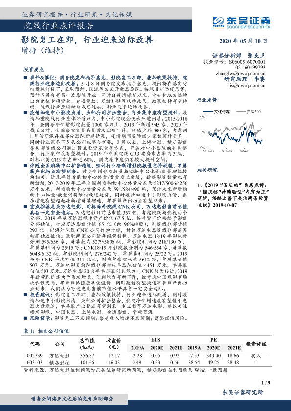 【东吴证券】【20200510】20200510-东吴证券-院线行业点评报告:影院复工在即,行业迎来边际改善-9页