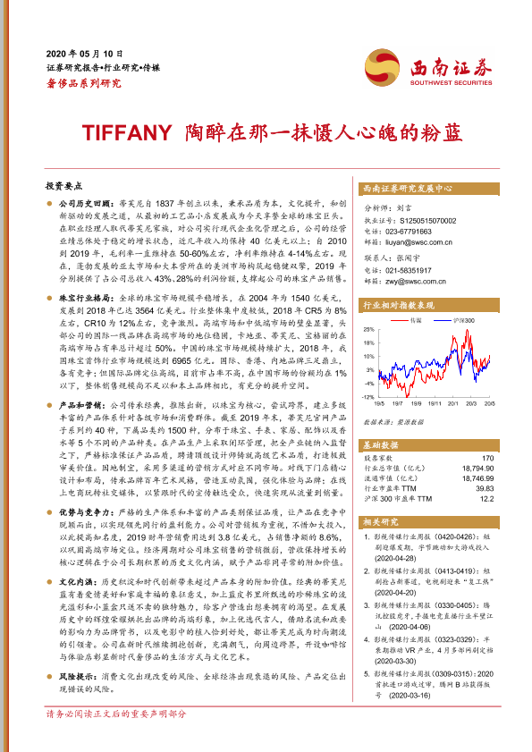【西南证券】【20200510】TIFFANY陶醉在那一抹慑人心魄的粉蓝-29页