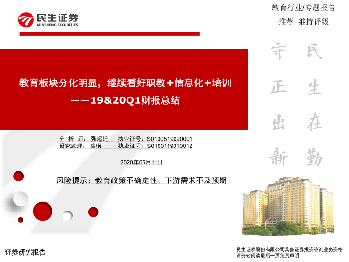 【民生证券】【20200511】19&20Q1财报总结:教育板块分化明显,继续看好职教+信息化+培训-31页