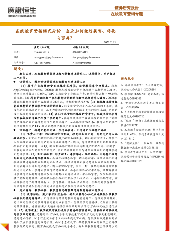 【广证恒生】【20200513】在线教育营销模式分析:企业如何做好获客、转化与留存?-25页