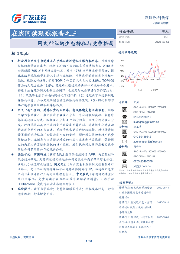 【广发证券】【20200514】在线阅读跟踪报告之三:网文行业的生态特征与竞争格局-16页