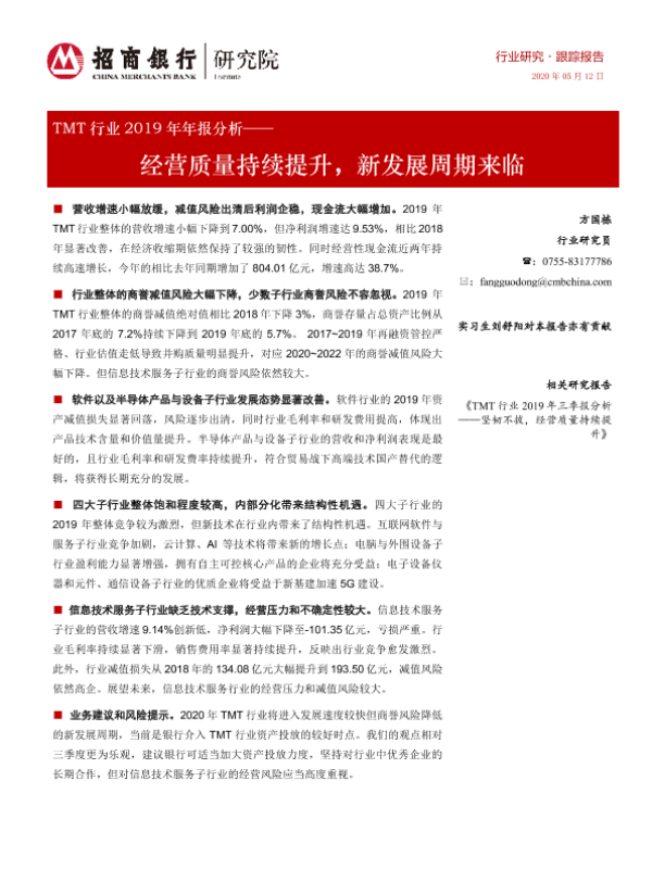 【招商银行】【20200512】TMT行业2019年年报分析——经营质量持续提升,新发展周期来临-20页