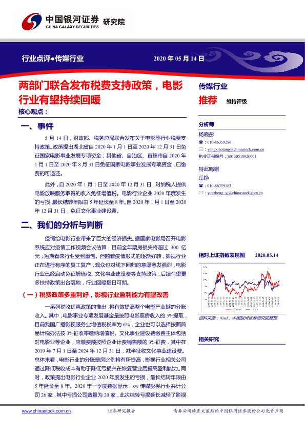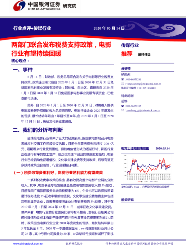 【银河证券】【20200514】两部门联合发布税费支持政策,电影行业有望持续回暖-7页