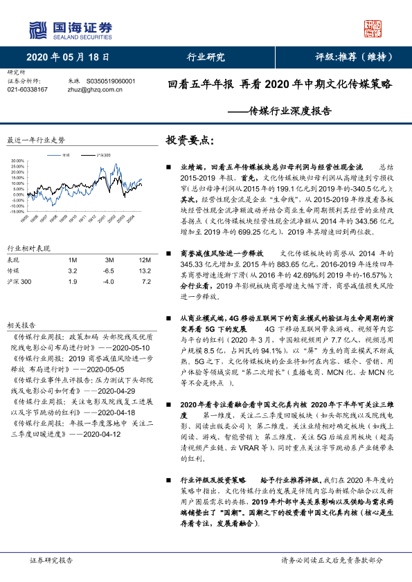 2020年中期策略 5G发展 五年年报 传媒行业 商誉减值
