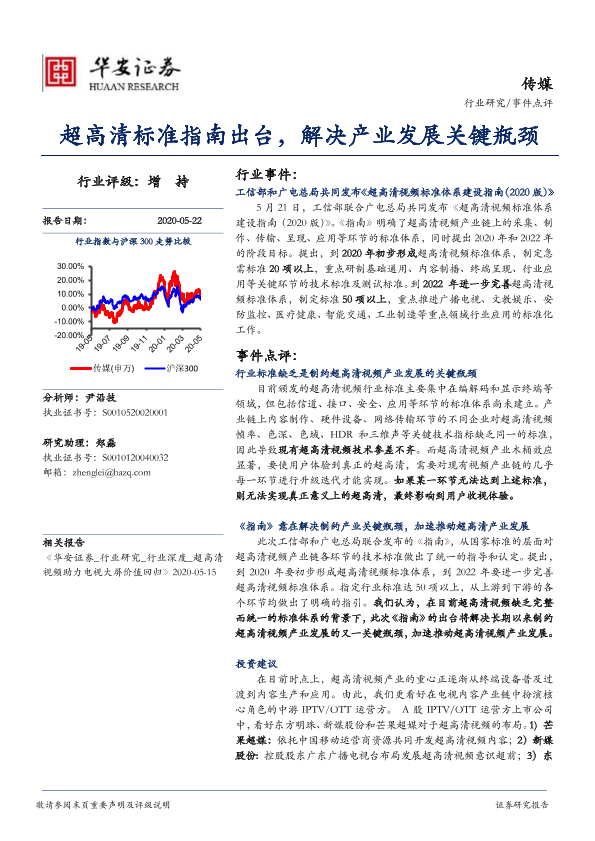 【华安证券】【20200522】传媒:超高清标准指南出台,解决产业发展关键瓶颈-3页