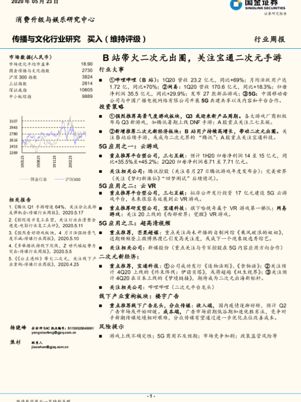 【国金证券】【20200523】传播与文化行业研究:B站带火二次元出圈,关注宝通二次元手游-3页