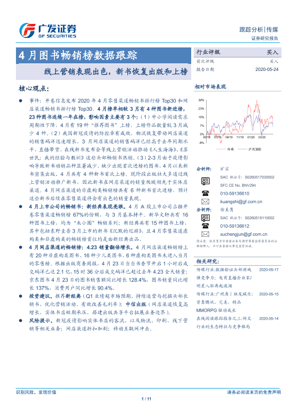 【广发证券】【20200524】4月图书畅销榜数据跟踪:线上营销表现出色,新书恢复出版和上榜-11页