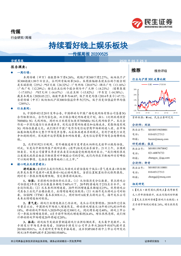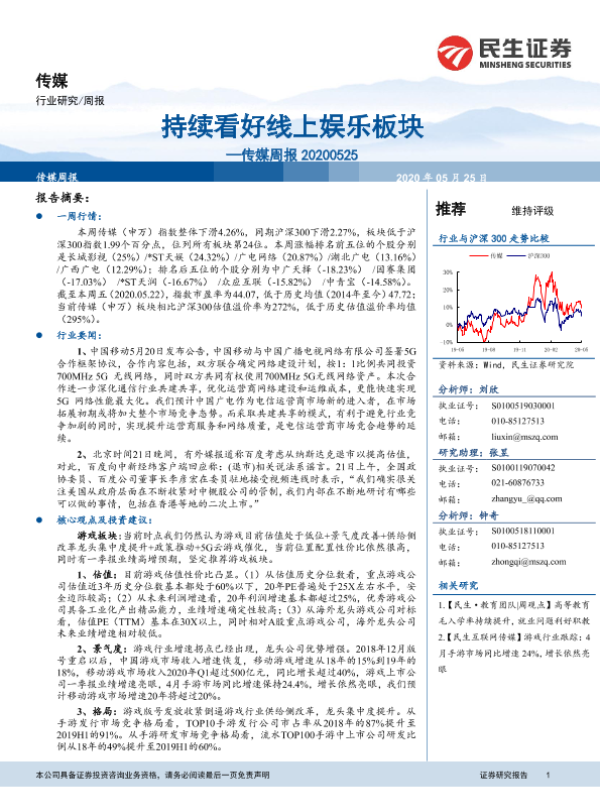 【民生证券】【20200525】持续看好线上娱乐板块—传媒周报 20200525-17页
