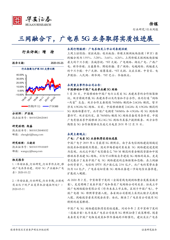 【华安证券】【20200525】20200525-华安证券-传媒行业周报:三网融合下,广电系5G业务取得实质性进展-16页