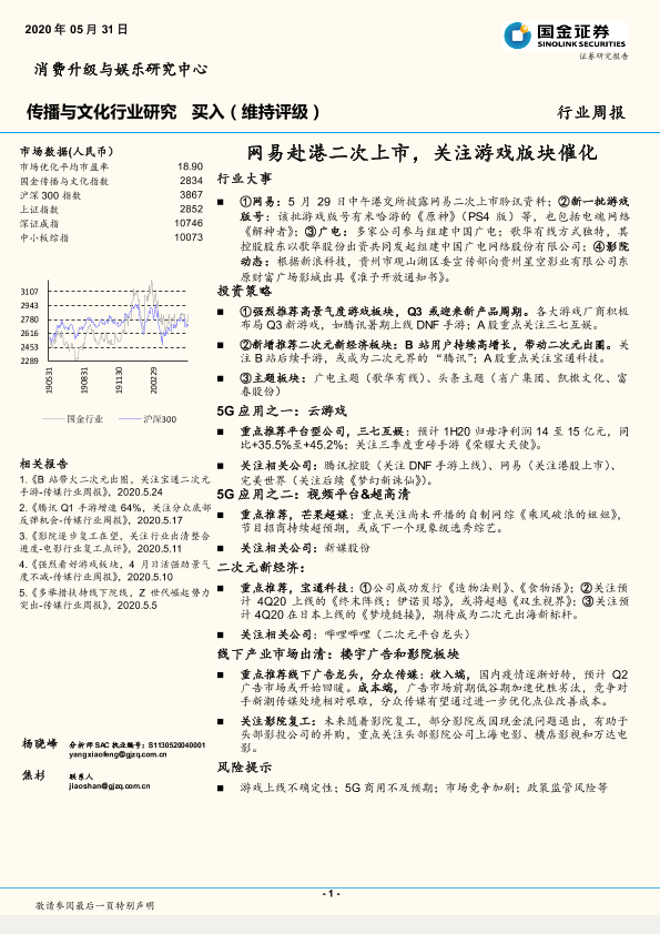 【国金证券】【20200531】20200531-国金证券-传播与文化行业研究周报:网易赴港二次上市,关注游戏版块催化-3页