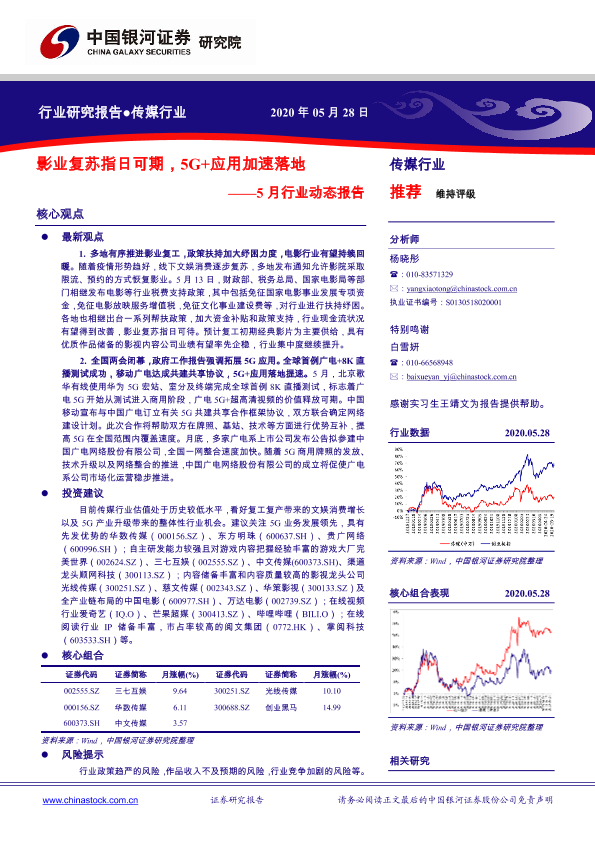 【银河证券】【20200528】传媒5月行业动态报告:影业复苏指日可期,5G+应用加速落地-71页