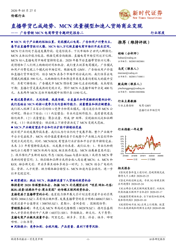 【新时代证券】【20200527】广告营销MCN电商带货专题研究报告二-直播带货已成趋势、MCN流量模型加速人货场商业变现-73页