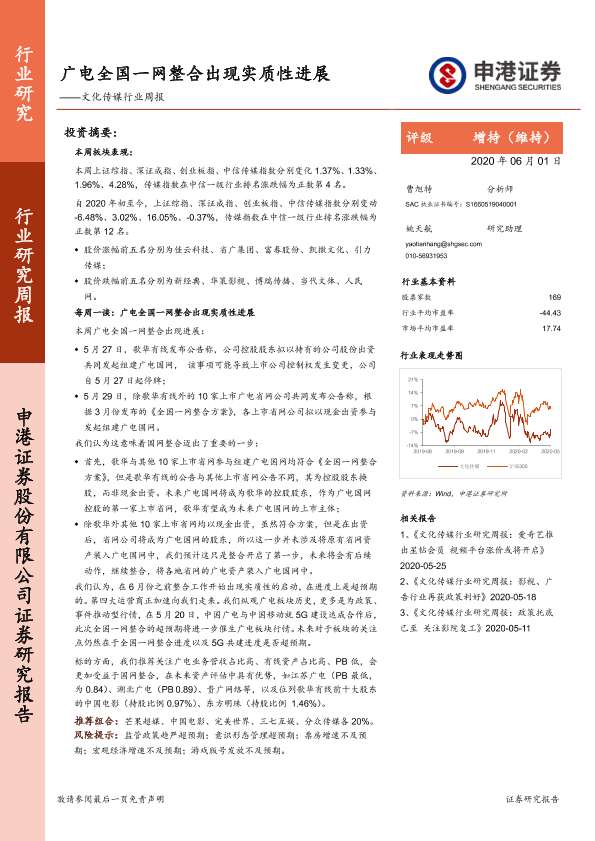 【申港证券】【20200601】20200601-申港证券-文化传媒行业周报:广电全国一网整合出现实质性进展-16页