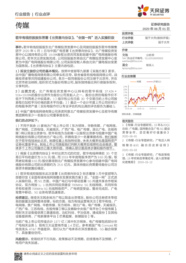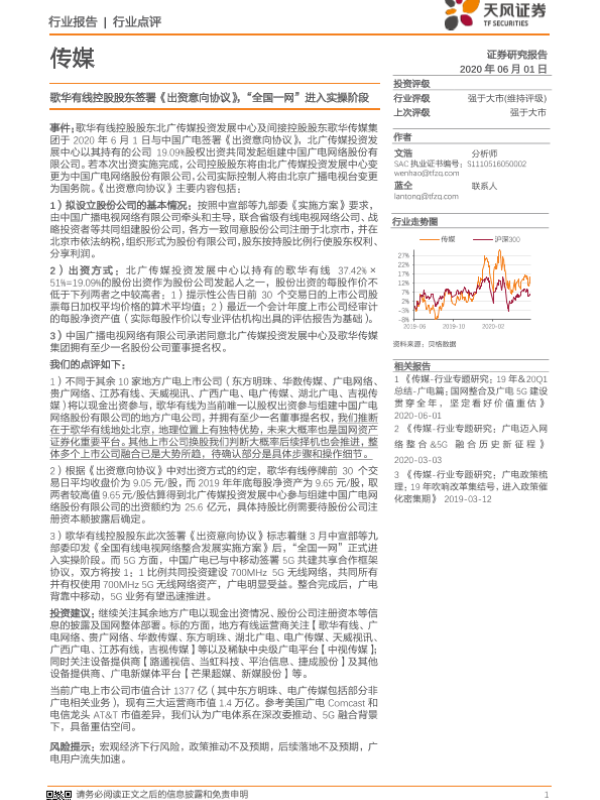 【天风证券】【20200601】传媒行业点评:歌华有线控股股东签署《出资意向协议》,“全国一网”进入实操阶段-4页