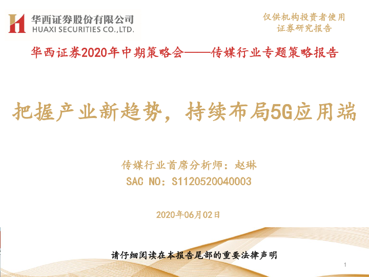 【华西证券】【20200602】20200602-华西证券-传媒行业专题策略报告:把握产业新趋势,持续布局5G应用端-32页